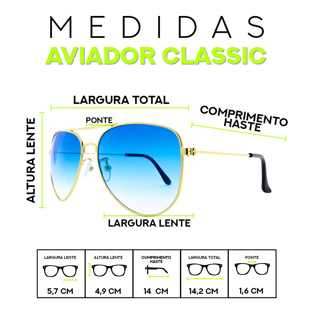 ✔ Design Atemporal – O aviador clássico nunca sai de moda.